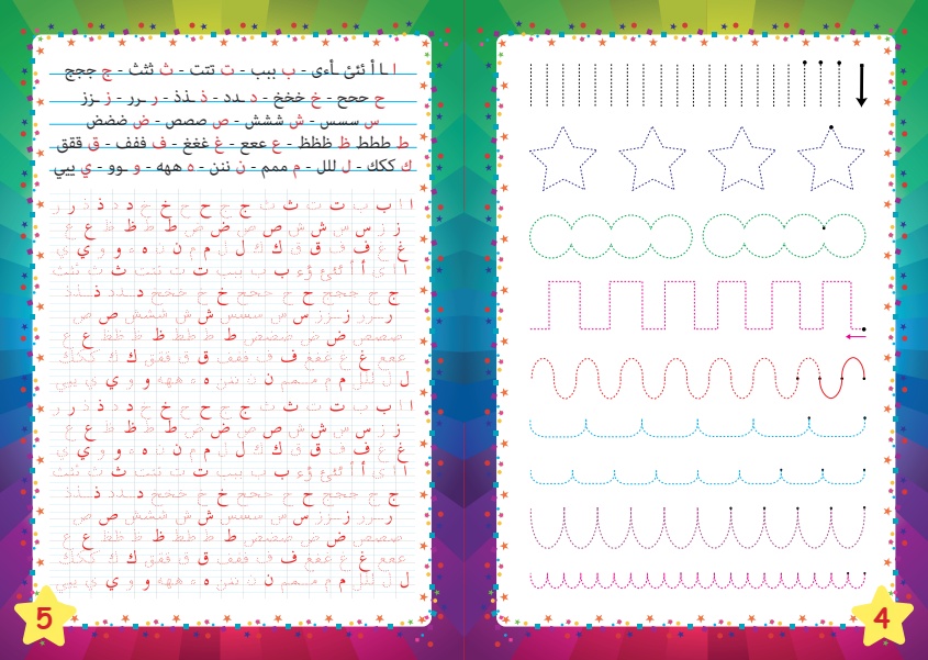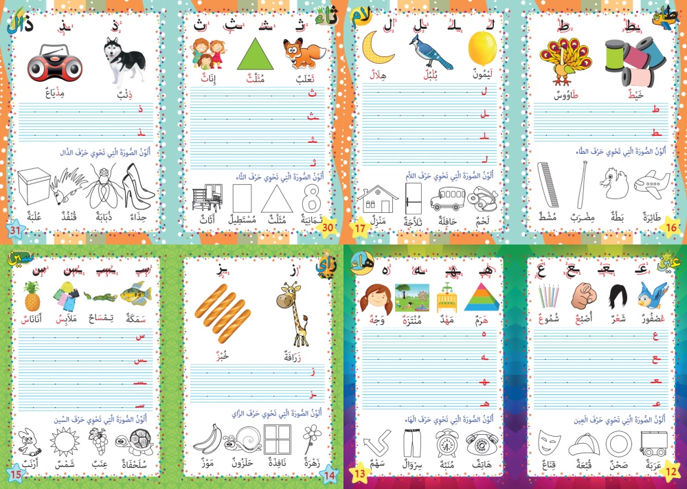Très beau cahier d'écriture et de coloriage à la pédagogie très étudiée pour la première année d'école arabe ou la maternelle... Ce livre est adapté aux enfants entre 4 et 7 ans. Les pages d'écriture contiennent des activités de coloriage...