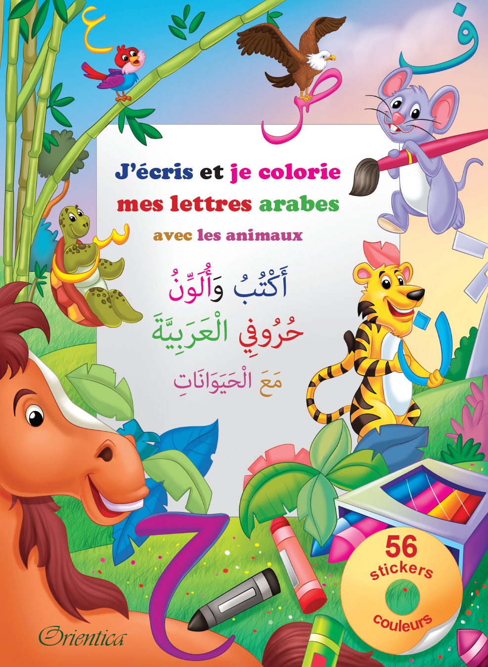 J’écris et je colorie mes lettres arabes avec les animaux (Cahier d'écriture alphabet arabe et coloriage avec 56 stickers) - أَكْتُبُ وَأُلَوِّنُ حُرُوفِي الْعَرَبِيَّةَ مَعَ الْحَيَوَانَاتِ - REF. 39936 (4.90 €)