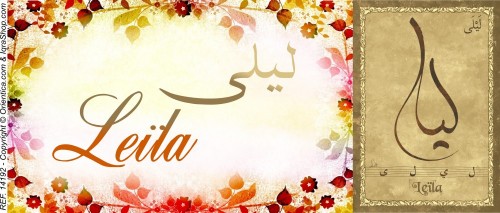 Signification (sens) du prénom Leïla (Layla, Leyla, Lila, Laila) لَيْلَى: Leïla est un prénom féminin arabe qui provient de l’arabe préislamique, il signifie l’alcool, la nuit, le crépuscule. Aussi le début de l’ivresse et du vertige de l’amour. Laylâ, femme célèbre par sa romance avec Qays.