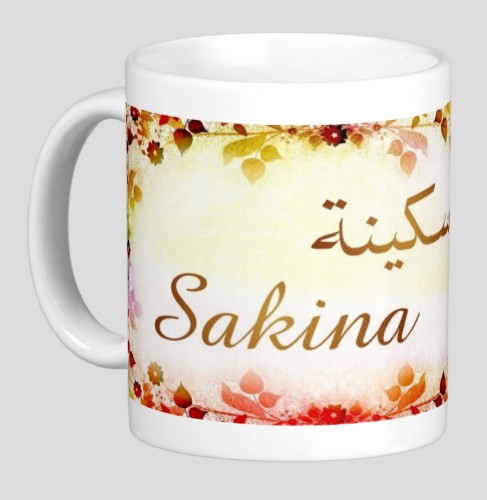 Mug avec le prénom Sakîna calligraphié en arabe (سكينة).