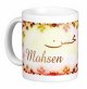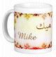 Mug avec le prénom "Kamilia" écrit en français, en arabe (كاميلية) et calligraphié de façon artistique en arabe sur la partie droite.