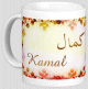 Mug avec le prénom "Ramzi" écrit en français, en arabe (رمزي) et calligraphié de façon artistique en arabe sur la partie droite.