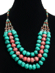 Collier ethnique artisanal femme imitation corail turquoise et perles - REF. 16972 (16.00 €)