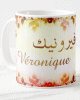 Mug avec le prénom "Josette" écrit en français, en arabe (جوزات) et calligraphié de façon artistique en arabe sur la partie droite.