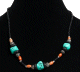 Collier ethnique artisanal femme imitation corail turquoise et perles - REF. 16972 (16.00 €)