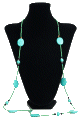 Long collier ethnique artisanal imitation pierres discoïdes turquoises agrémenté de perles et autres pièces ornementales - REF. 17513 (22.00 €)