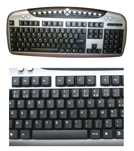 • Clavier bilingue Azerty français/arabe avec affichage complet des caractères et vocalisations de la langue arabe. Touches arabes en couleur vert fluo très lisible.