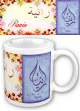 Mug avec le prénom "Sophia" écrit en français, en arabe (صوفيا) et calligraphié de façon artistique en arabe sur la partie droite.