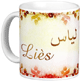 Mug avec le prénom "Bilel" écrit en français, en arabe (بلال) et calligraphié de façon artistique en arabe sur la partie droite.