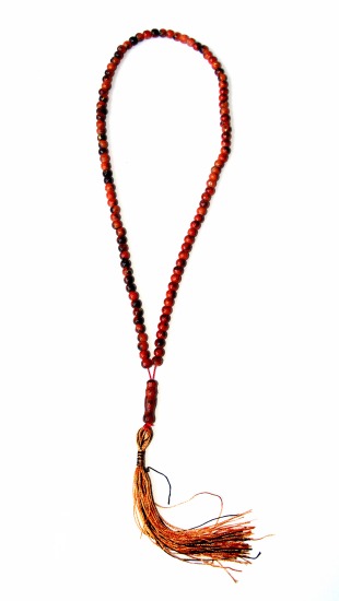 Sabha (Chapelet) 99 perles de couleur orangé foncé et motifs noirs Divers