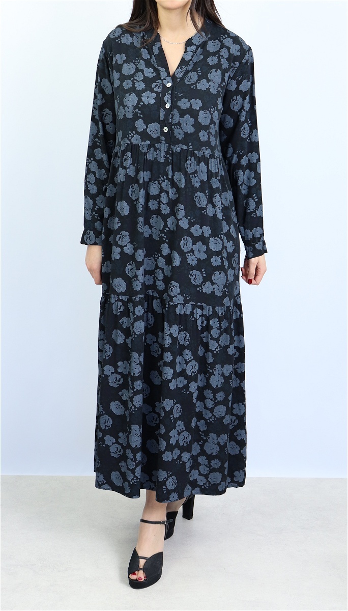 Robe longue noire à fleurs et motifs cachemire pour femme - REF. 30219 (25.00 €)