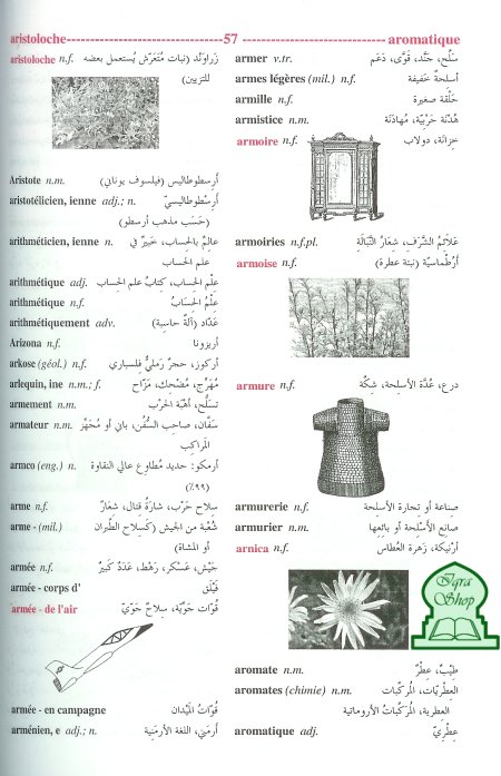 Dictionnaire FR/AR général, linguistique, technique, et scientifique. Renferme les termes scientifiques : médicaux, mathématiques,physiques, chimiques, informatiques et génie général.