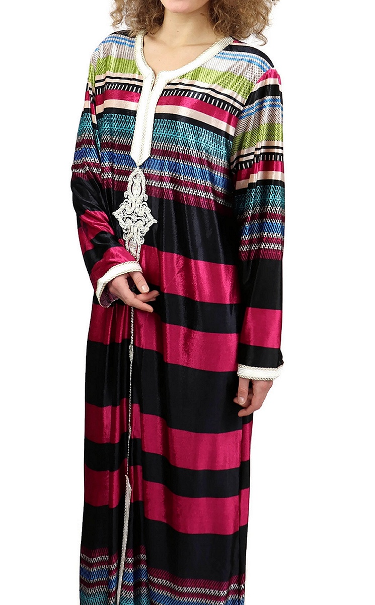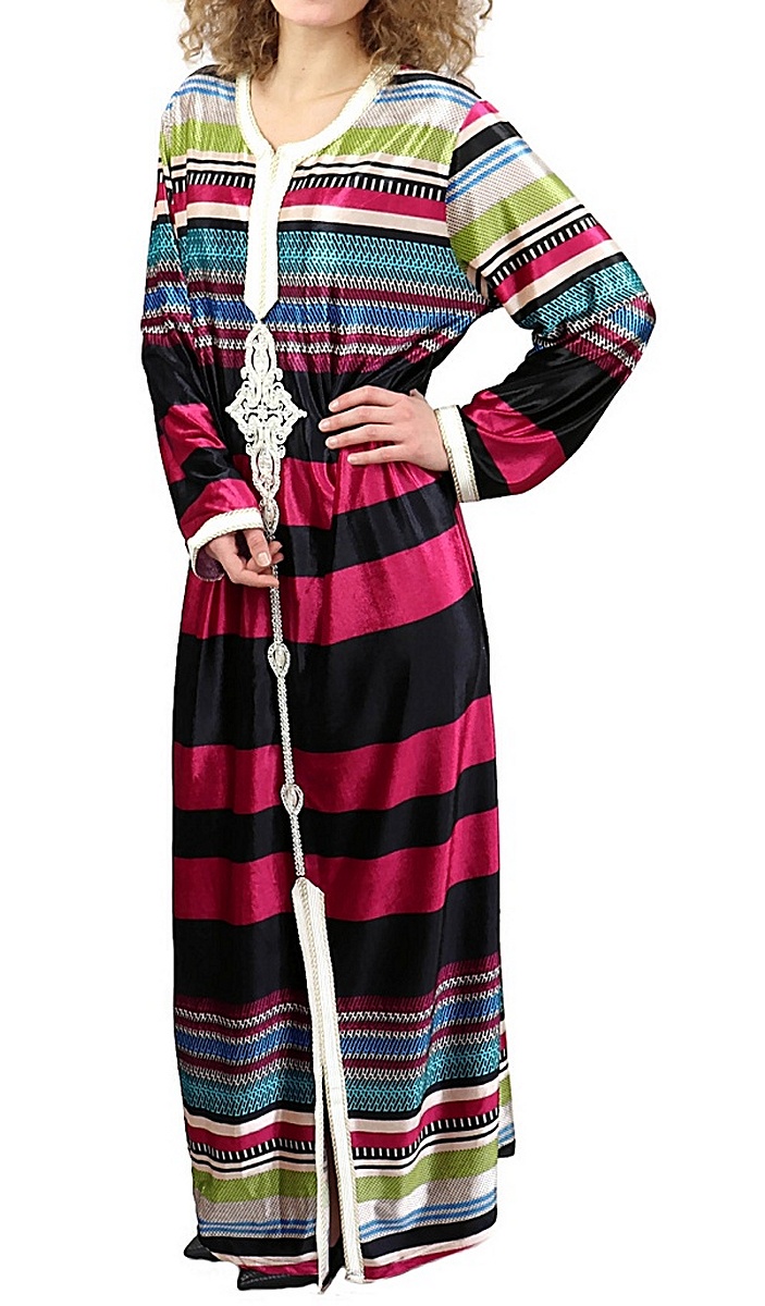 Robe Gandoura longue à rayures multicolore de style Oriental - Couleur rose fuchsia - REF. 38858 (19.90 €)