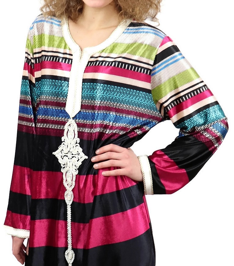 Gandoura / Robe marocaine pour femme avec rayures multicolores (Taille Standard) - violet - REF. 17553 (25.00 €)