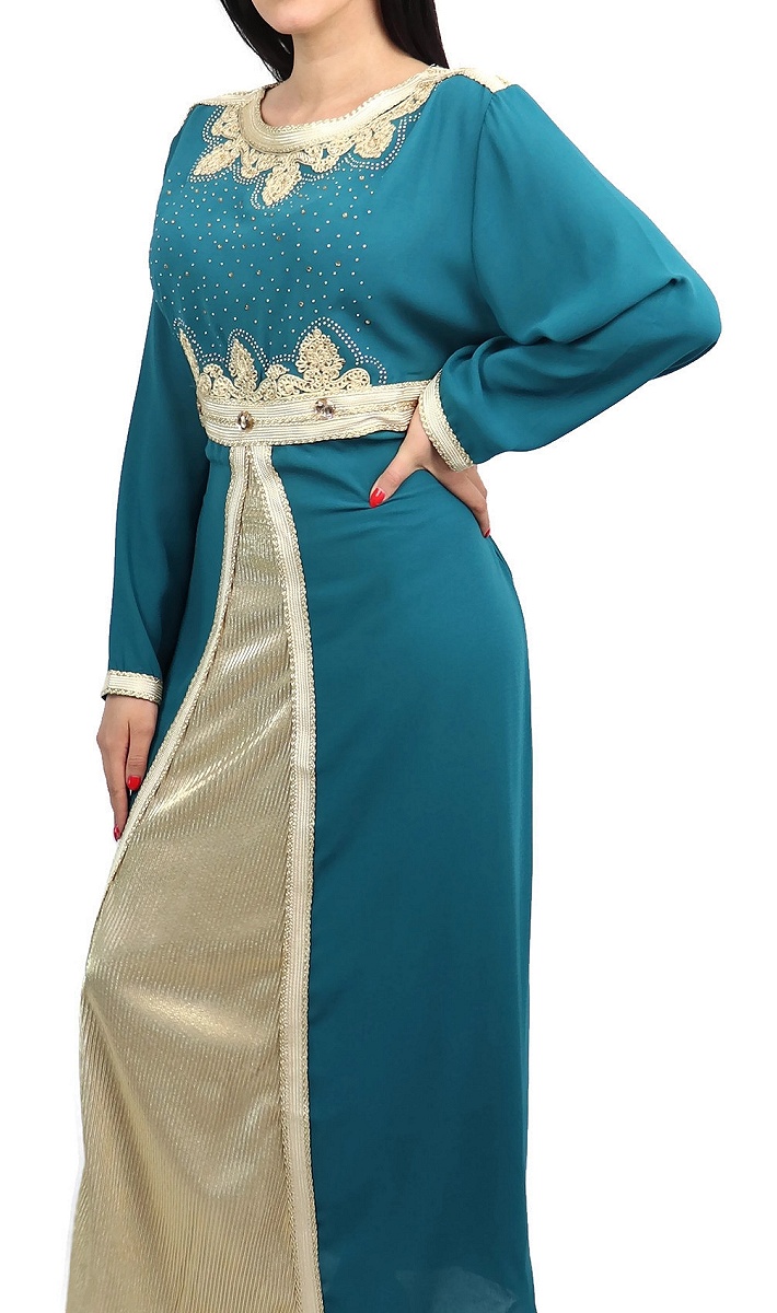 Robe longue, finition broderies au col, à la taille et aux poignets, liens de serrage à la taille. Ce modèle est tout à fait adapté pour les cérémonies et occasions. Sobre et élégant, il ne vous reste que les accessoires à trouver.