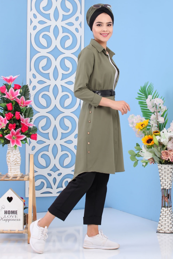 Tunique chemise longue pour femme - Couleur Kaki Vetement & Accessoire