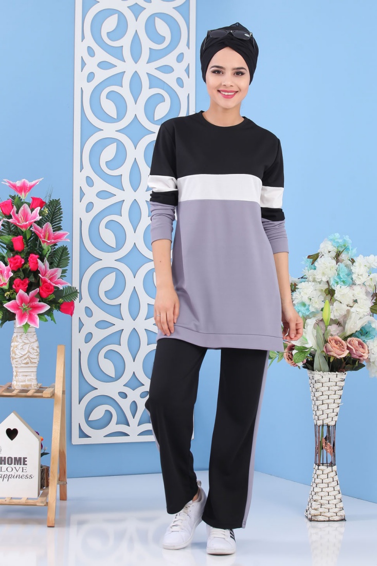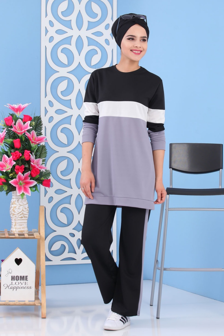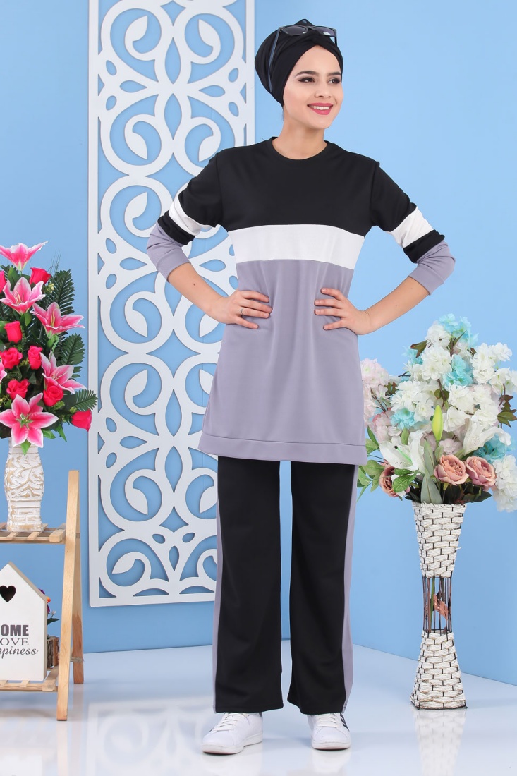 Ensemble survêtement pour femme, haut mi long, col rond, manches longues ; bas coupe droite, taille élastique. Voici un nouveau modèle chic disponible dans différentes couleurs. Cette tenue est parfaite pour le sport ou bien pour se mettre en mode "décontracté".