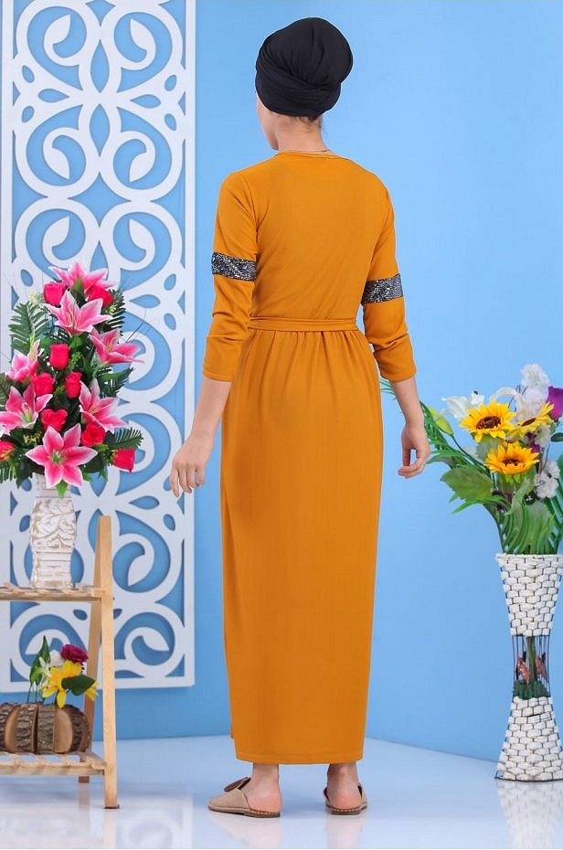 Robe longue décontractée chic à strass pour femme - Couleur jaune moutarde Vetement & Accessoire
