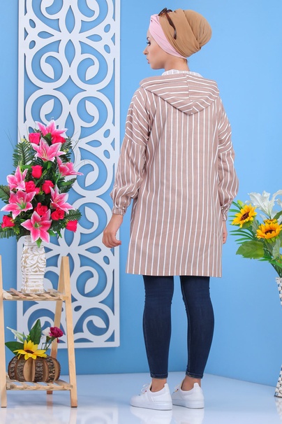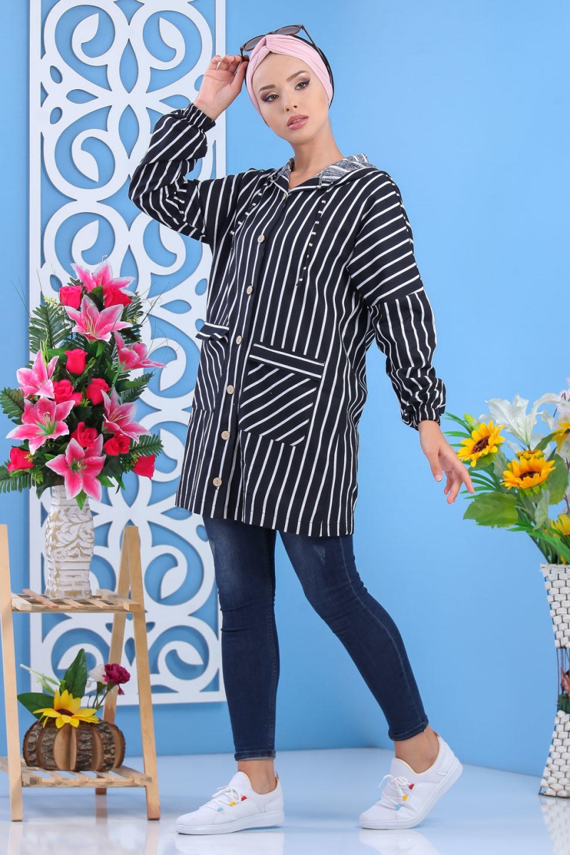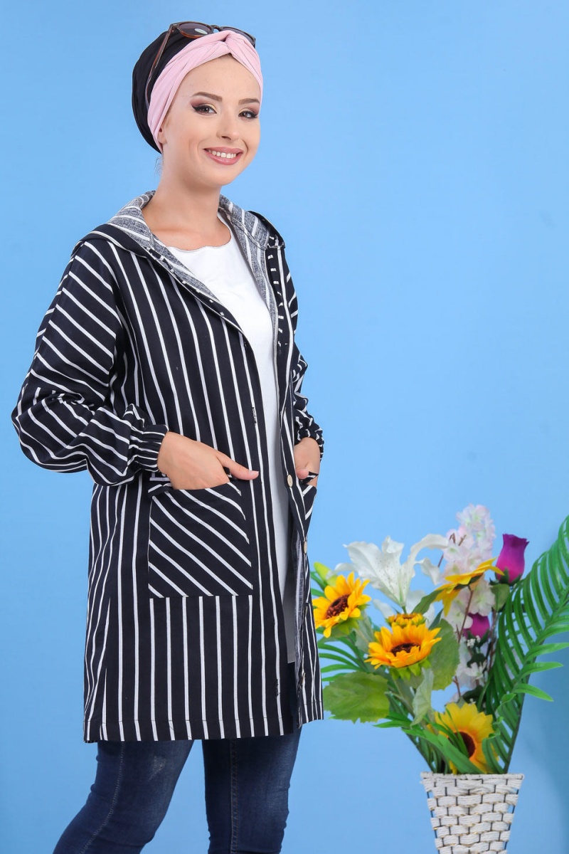 Veste mi longue, capuche avec lien de serrage, manches longues finition élastiques aux poignets, 2 poches avant, fermeture bouton, tissu léger. Ce modèle, mi saison, s'adaptera à vos tenues décontractées en faisant un petit effet "plus".