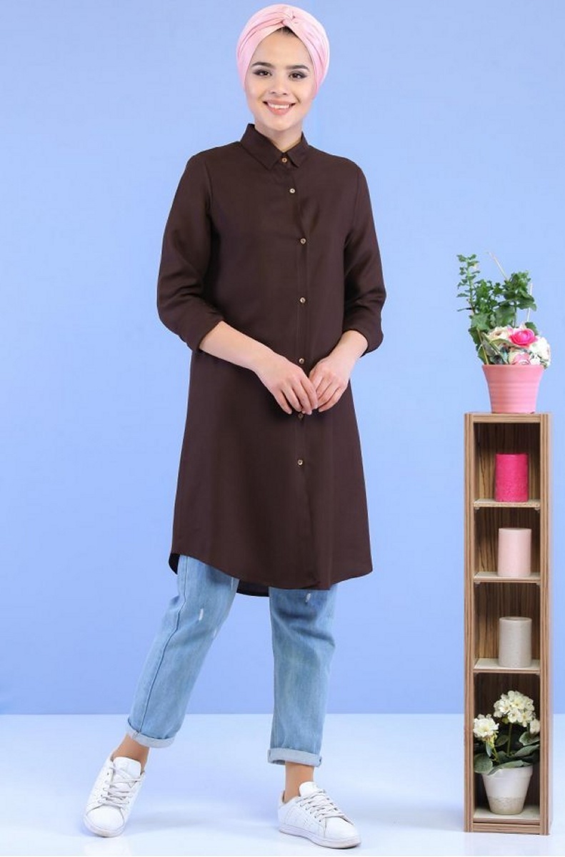 Chemise longue, col chemise, manches finition boutons aux poignets, coupe légèrement évasée, extrémités arrondies, tissu léger. Ce modèle reste un basique et indémodable qui se porte en toute saison et diverses occasions.