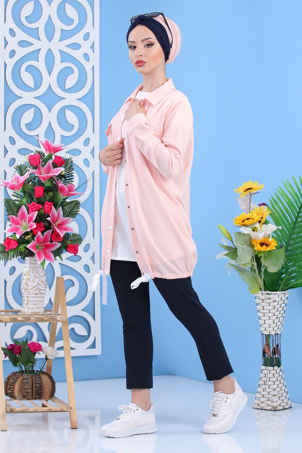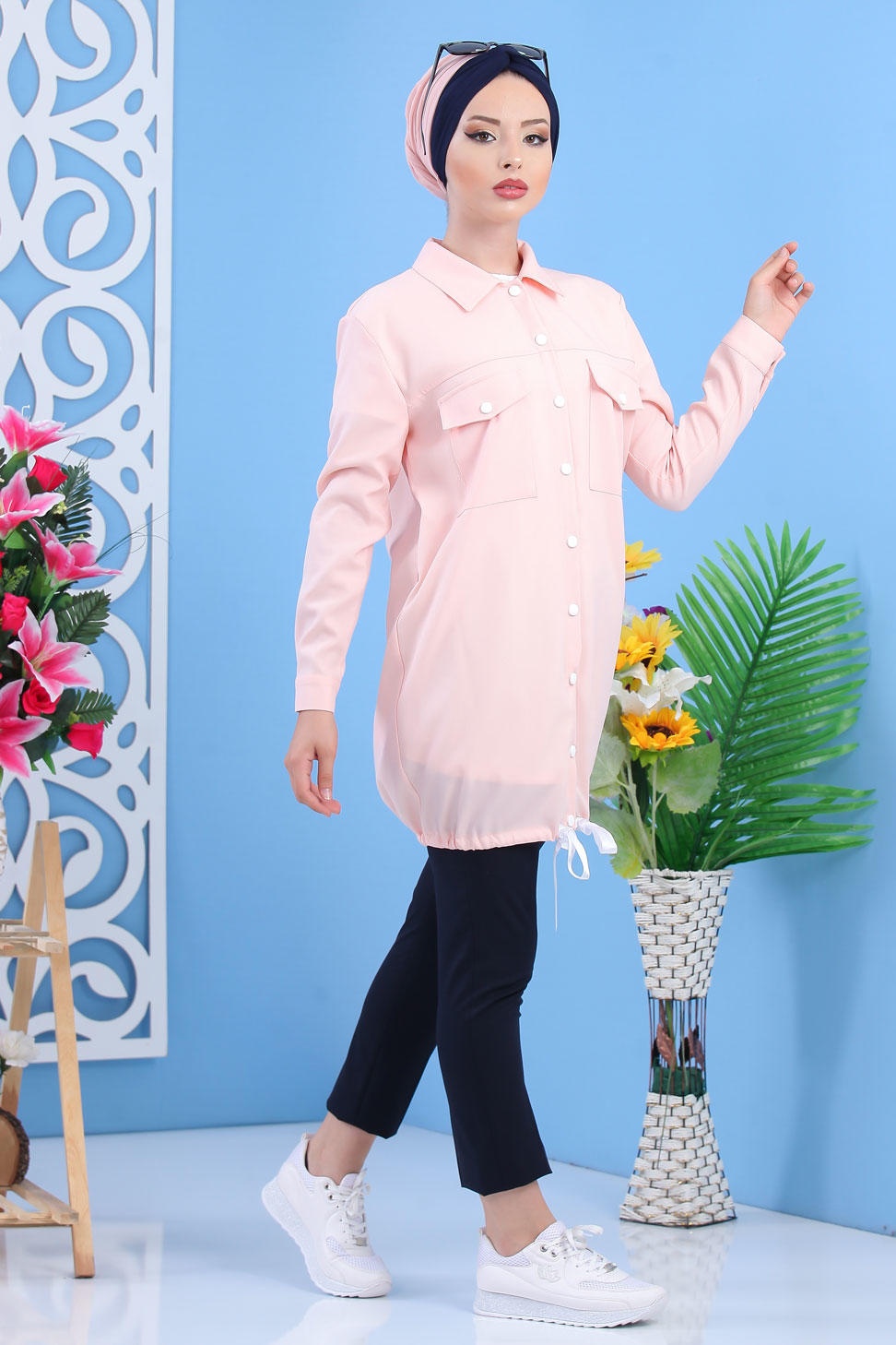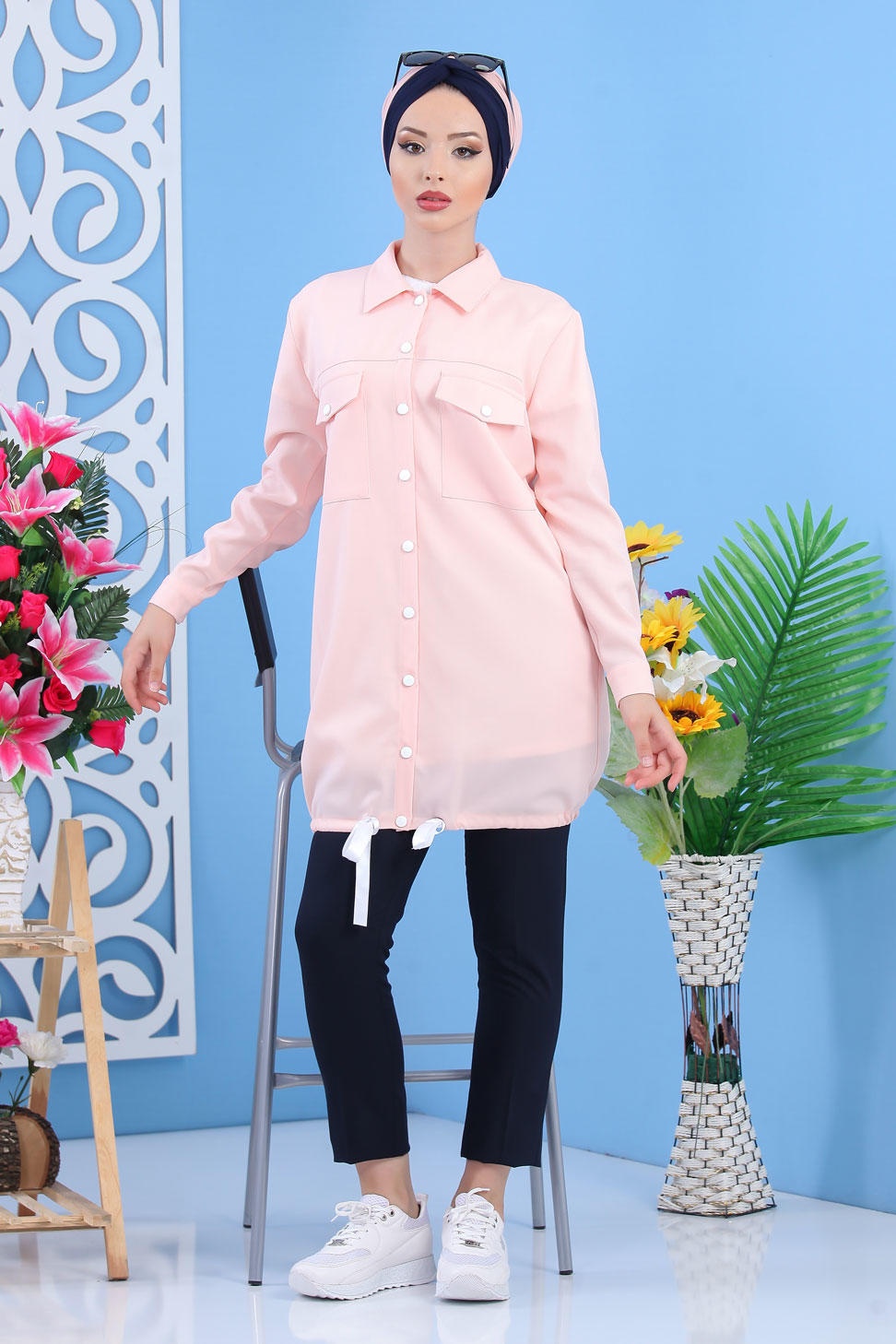 Tunique-Chemise ample boutonnée (Vetement décontracté femme voilée) - Couleur bleu - REF. 33198 (19.90 €)