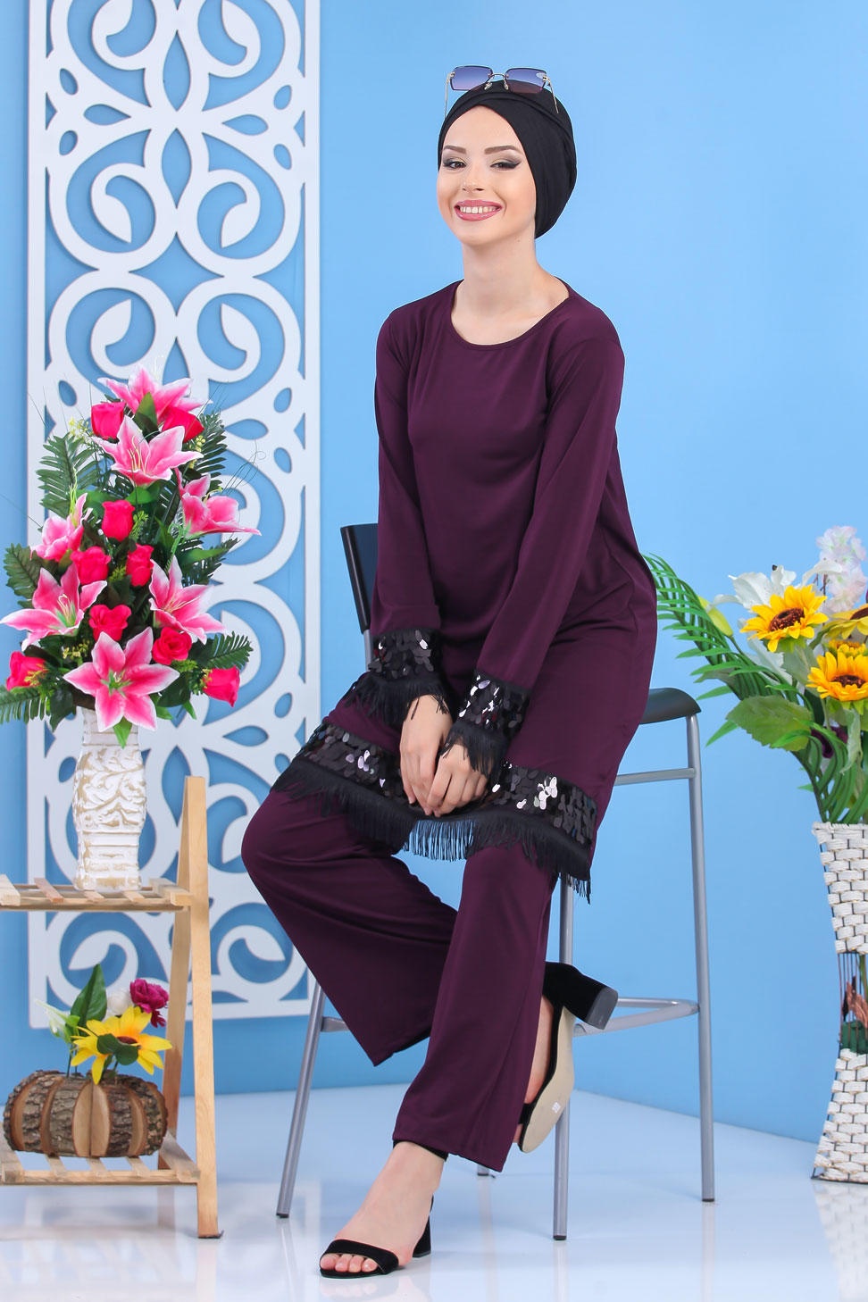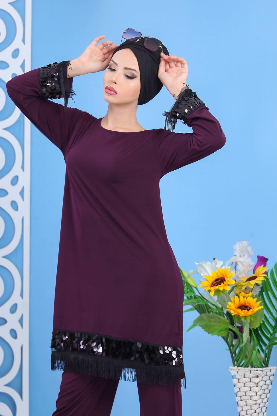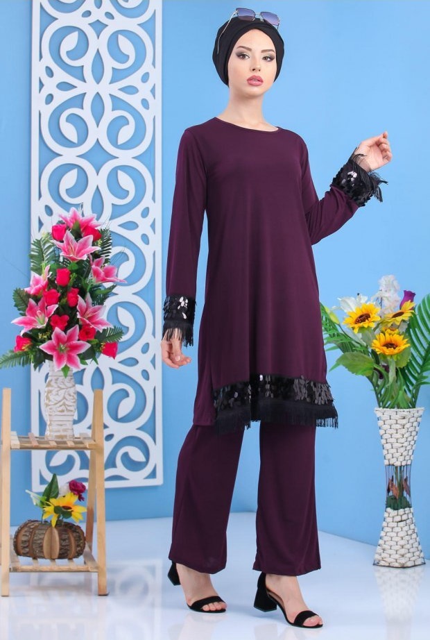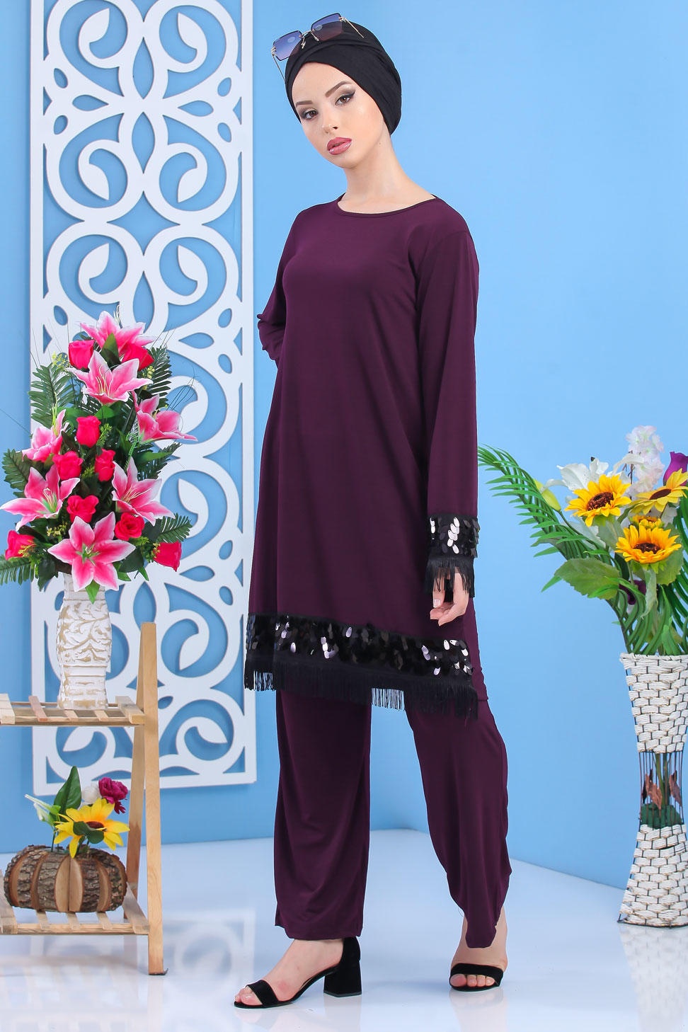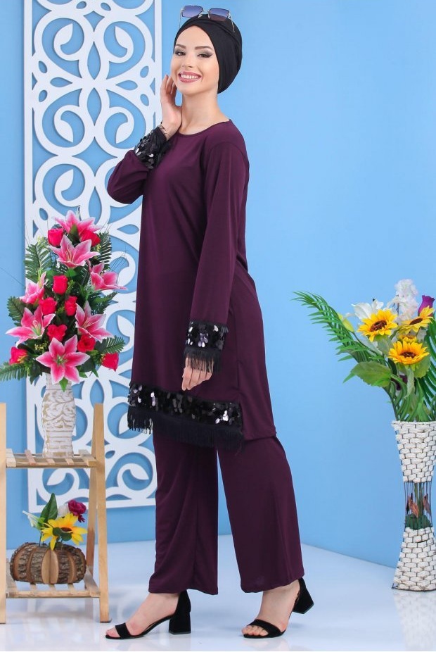 Ensemble chic pour femme - Tenue 2 pièces (tunique + pantalon) - Couleur violet Vetement & Accessoire