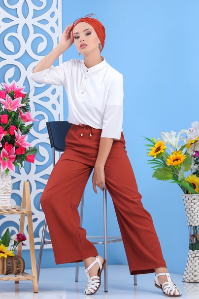 Pantalon long, coupe droite, taille élastique. Ce vêtement élégant est en tissu crêpe et fluide, accommodé d'un lien de serrage, il sera parfait pour la mi saison.