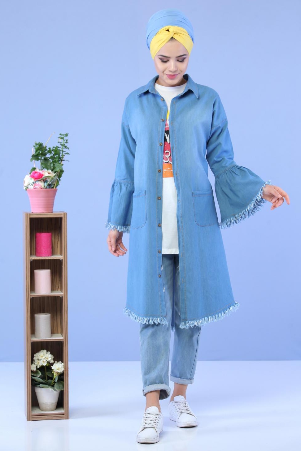 Chemise longue en jean clair (vetement mastour pour femme)