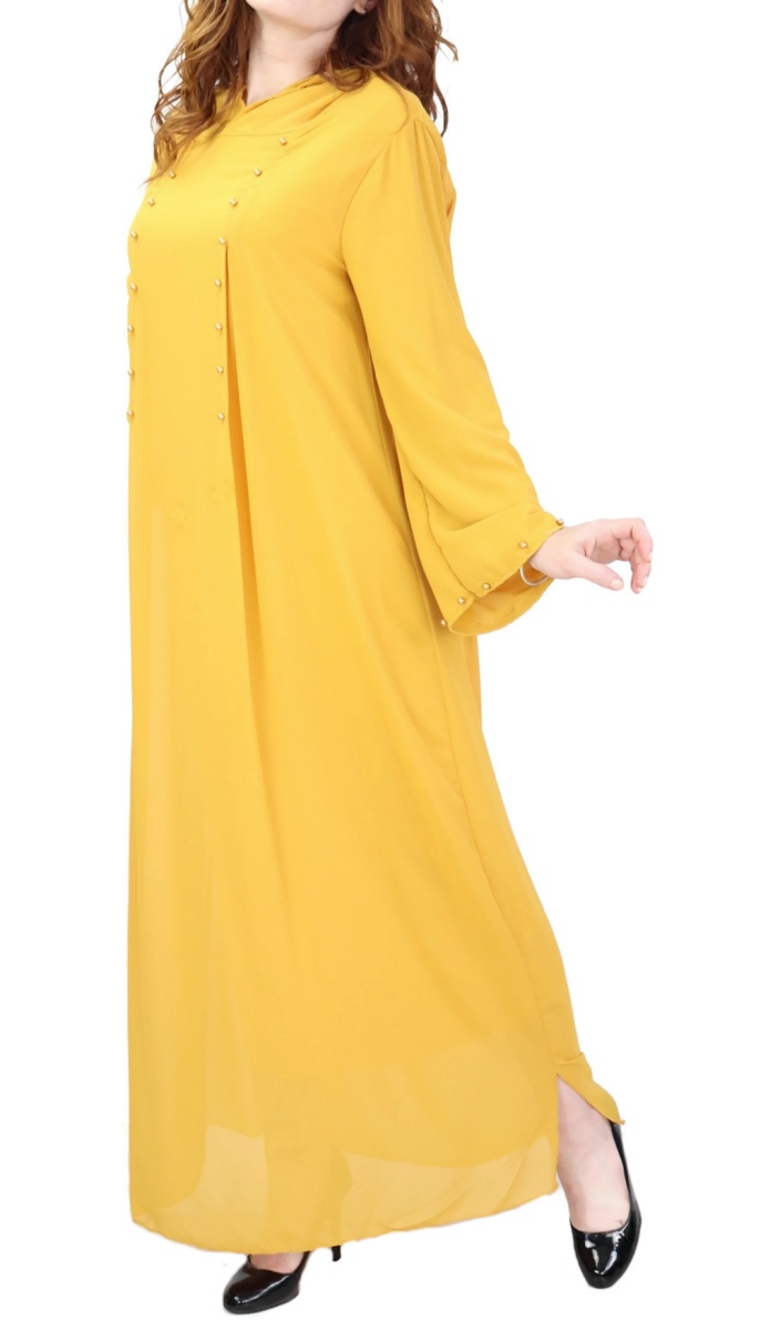 Robe longue avec strass sur les manches style décontracté et chic pour femme - Couleur jaune moutarde - REF. 30506 (35.00 €)