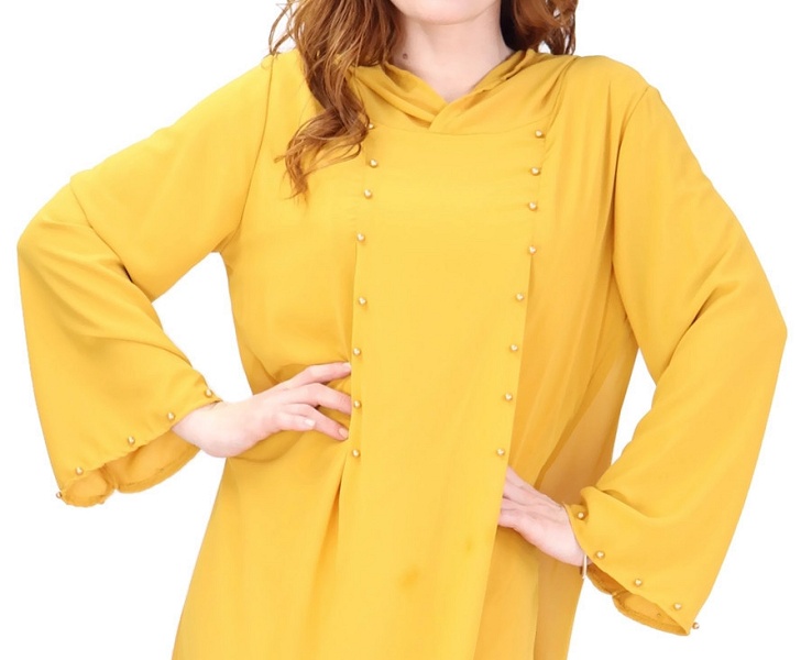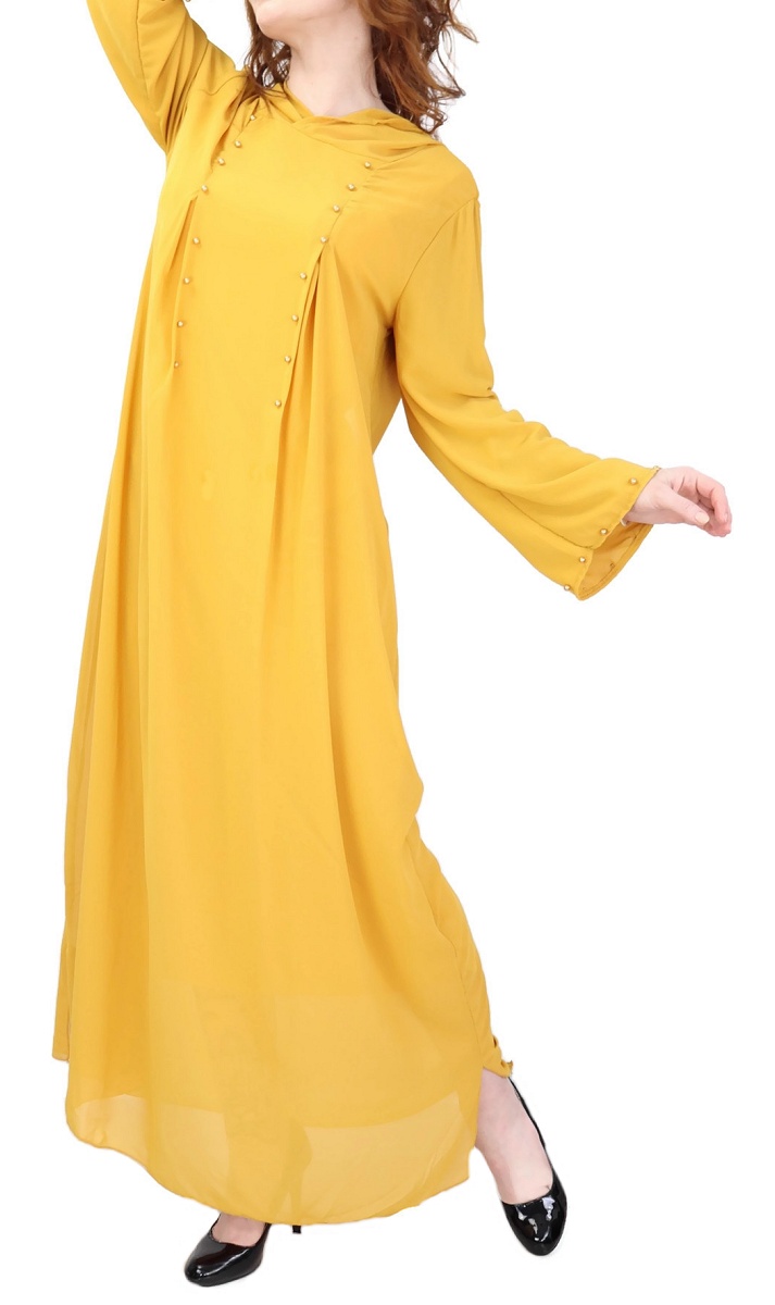 Robe longue fluide a capuche ornee de perles pour femme - Couleur Jaune