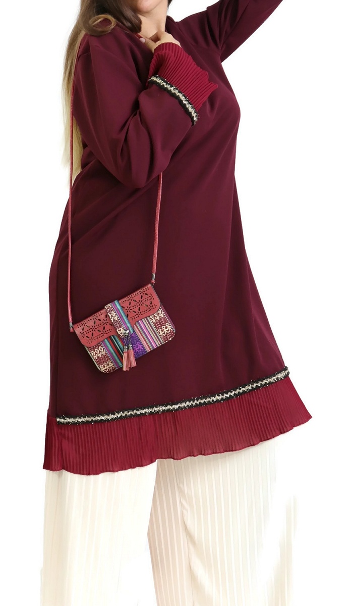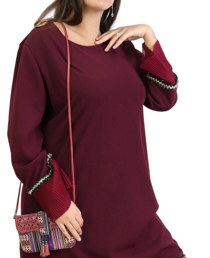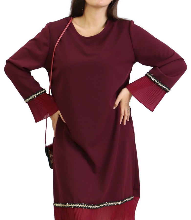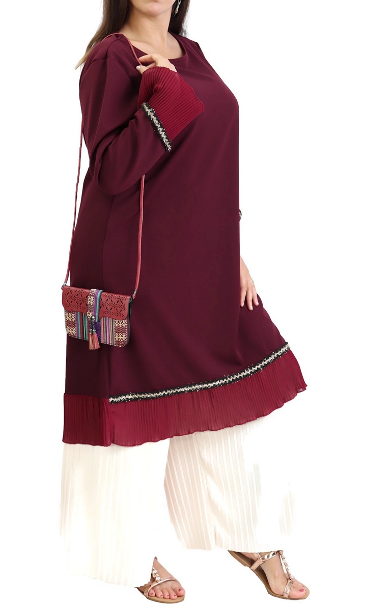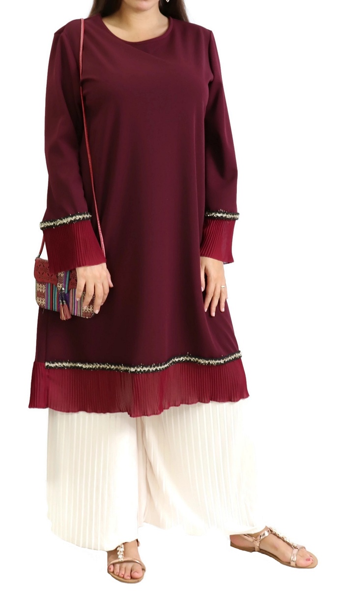Tunique ample avec parties plissées pour femme (Grande taille) - Couleur Prune Vetement & Accessoire