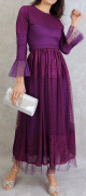Cette robe longue est brodée de motifs orientaux sur le col et la poitrine.