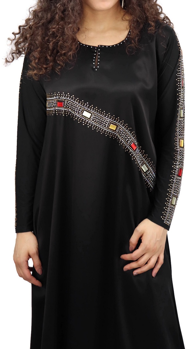 Robe Abaya Dubaï noire de qualité avec broderie et strass - REF. 38187 (39.90 €)