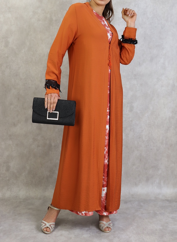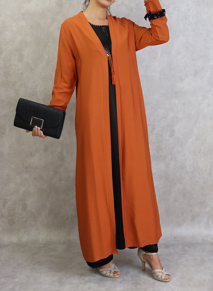 Ensemble décontracté et mastour pour femme : Robe et kimono assorti (deux pièces) - Couleur rouille - REF. 30577 (49.00 €) - En Promotion à 39.00 €