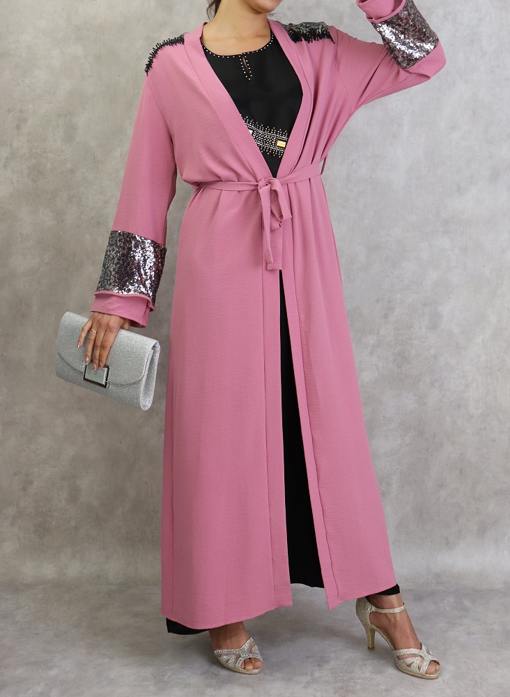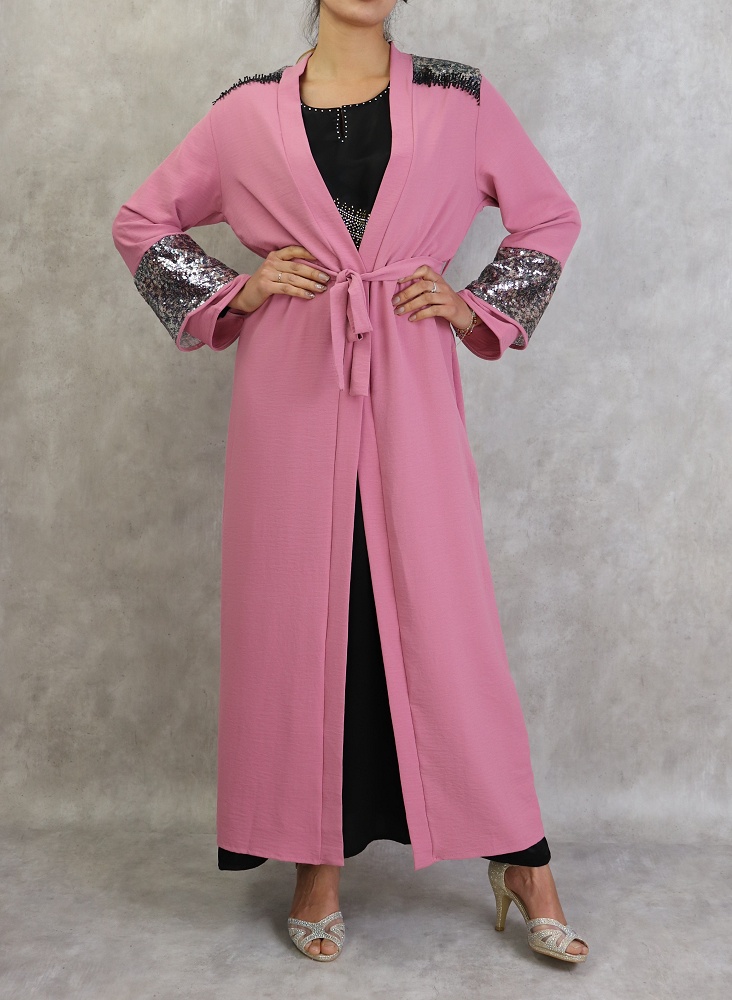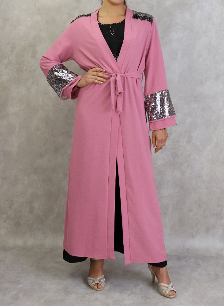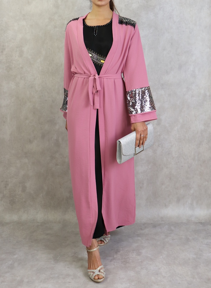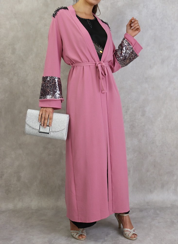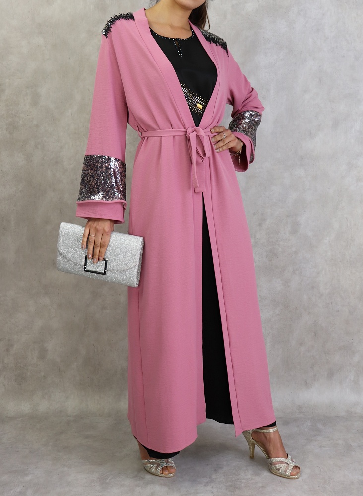 Kimono long a strass de couleur rose
