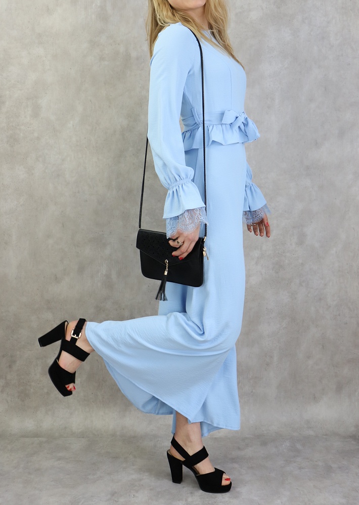 Robe longue casual fluide evasee a volants pour femme - Couleur bleu ciel