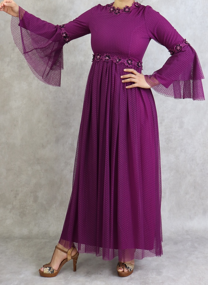 Robe de soirée chic en tulle pour femme - Couleur violet Vetement & Accessoire