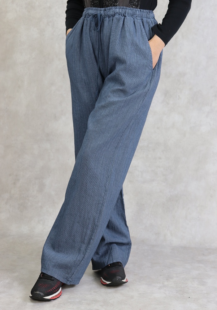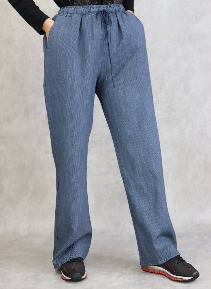 Pantalon à fines rayures 100% lin pour femme (Plusieurs couleurs disponibles)