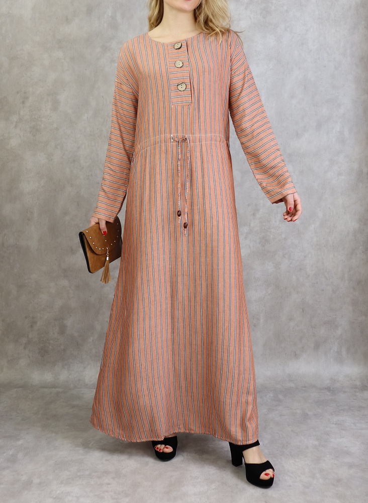 Robe à rayures à haut boutonné couleur Cuivre clair Vetement & Accessoire