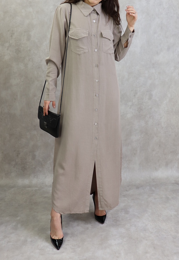 Robe chemise longue de couleur taupe Vetement & Accessoire