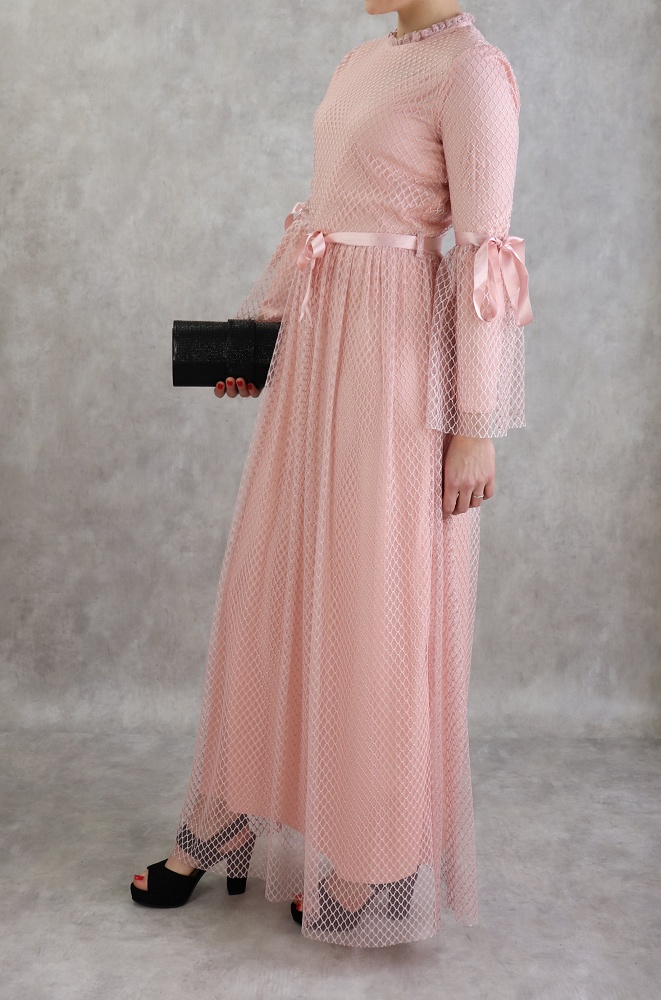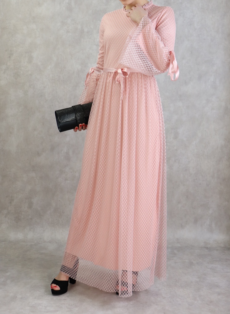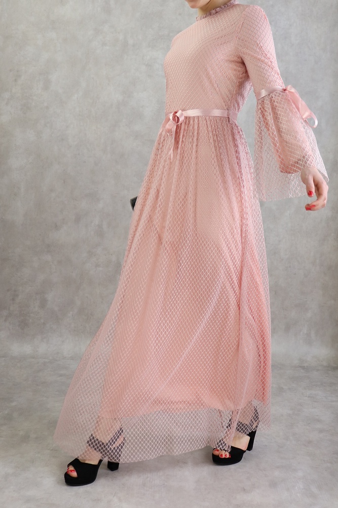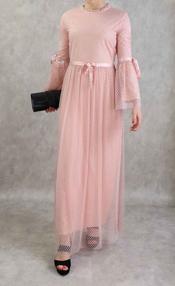 Robe de soirée longue en tulle à dentelle de couleur rose clair Vetement & Accessoire