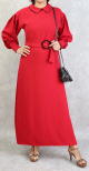 Robe longue, col rond, fermeture à glissière au dos, manches longues finition froufrous, effet boléro sur le buste, taille cintrée. Coupe évasée, tulle sur la moitié de la robe, entièrement doublée.
