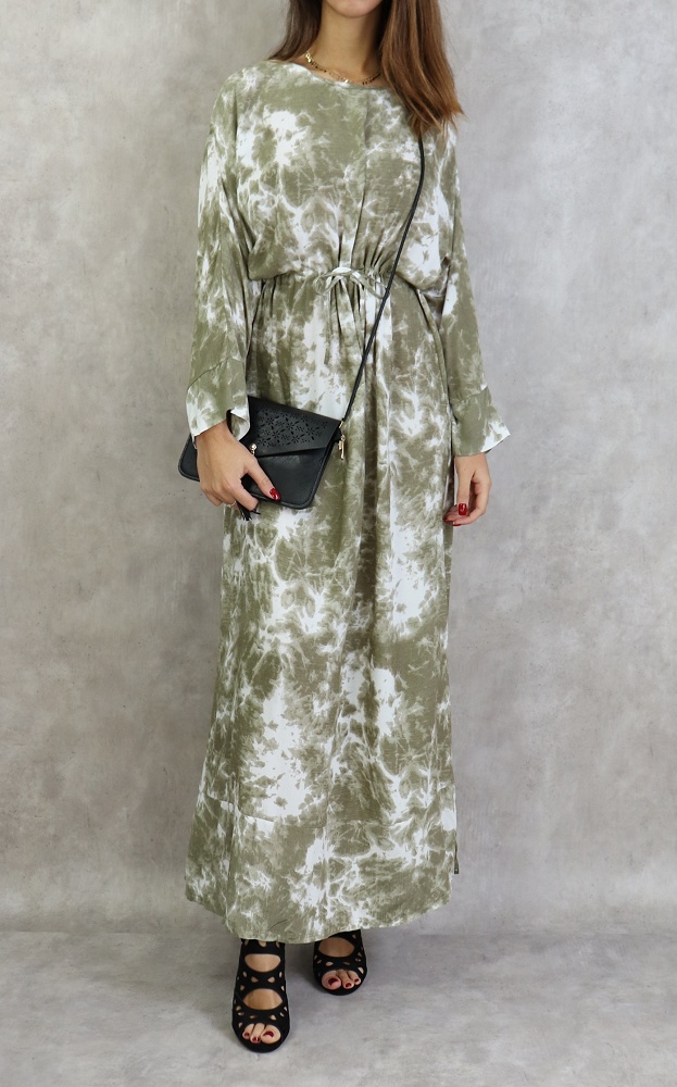 Robe longue en coton à imprimés délavés - Couleur kaki Vetement & Accessoire