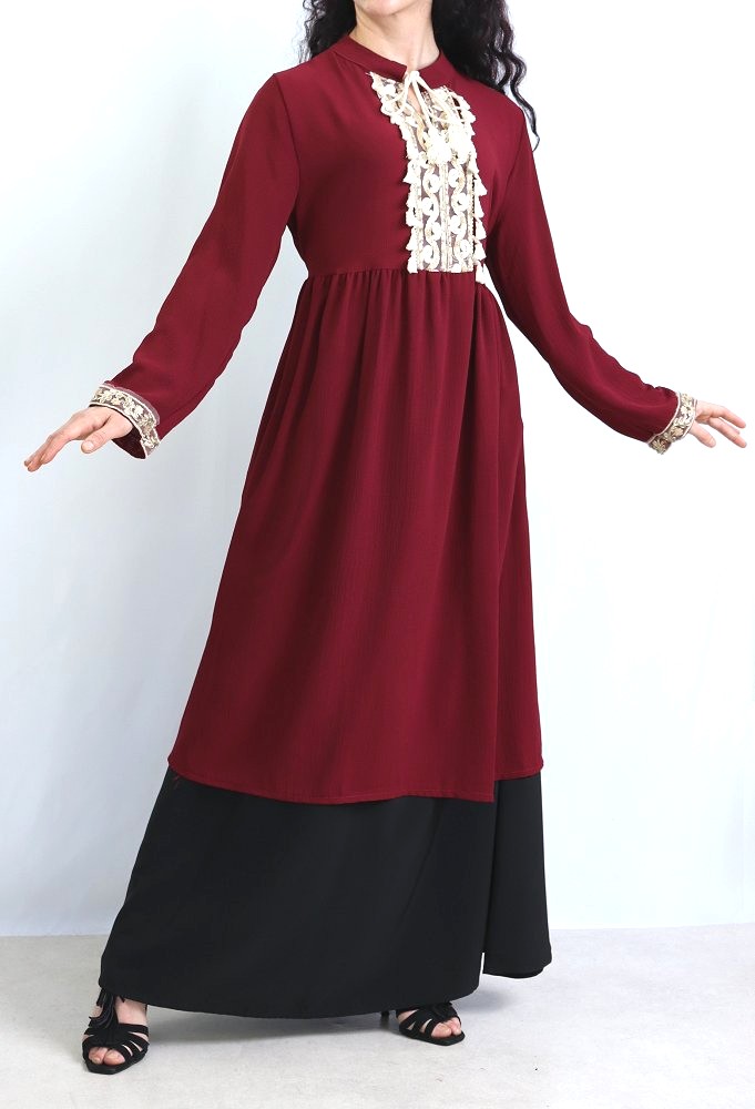 Tunique à pompons brodée et décorée, col rond doté de cordons, ceinture à 2 liens qui peuvent aussi bien se nouer à l’avant comme à l'arrière afin de faire un effet cintré. Matière de type crêpe légère et agréable à porter.