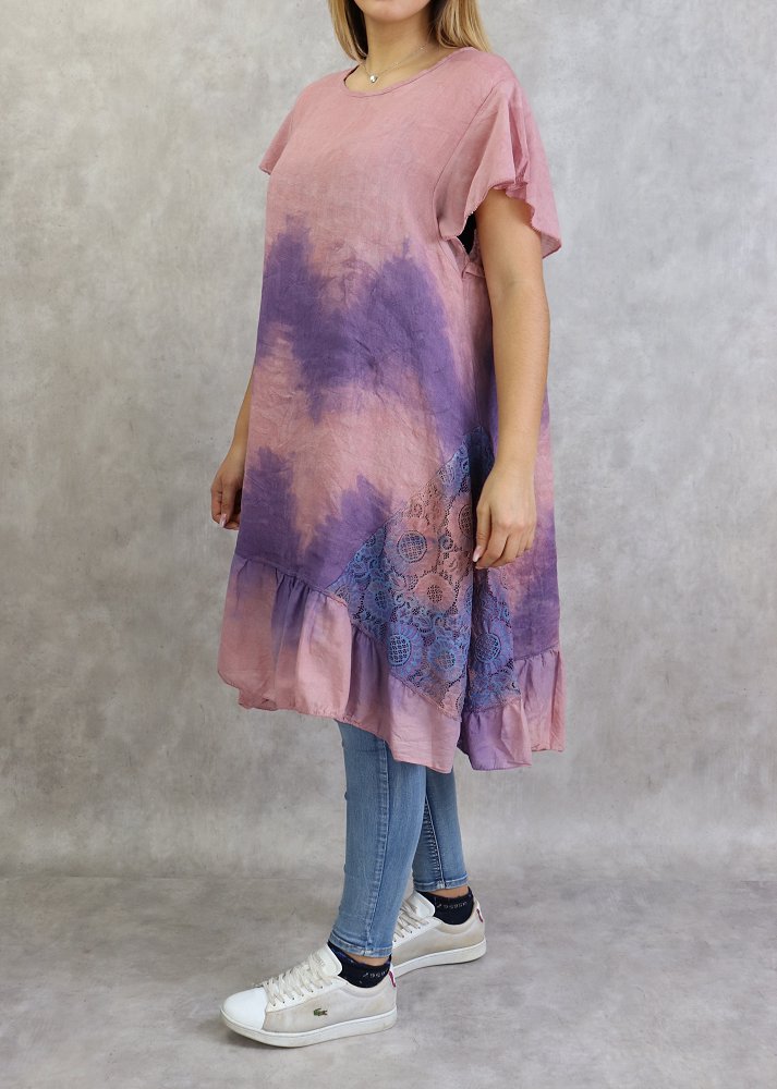 Tunique longue et ample delavee de couleur vieux rose et mauve (Coton et Lin - Grandes tailles pour femmes)