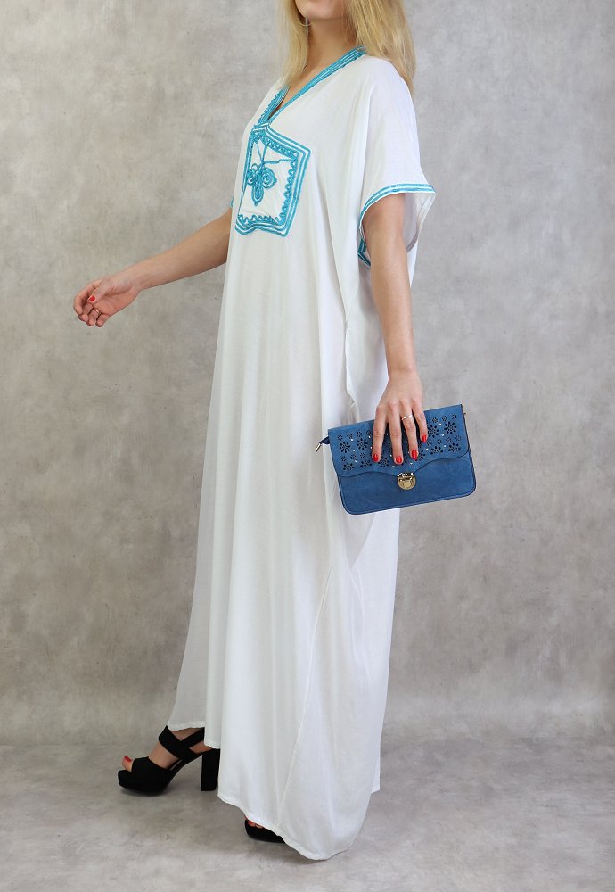 Belle gandoura traditionnelle marocaine, entièrement brodée à la main par des artisans marocains qualifiés.