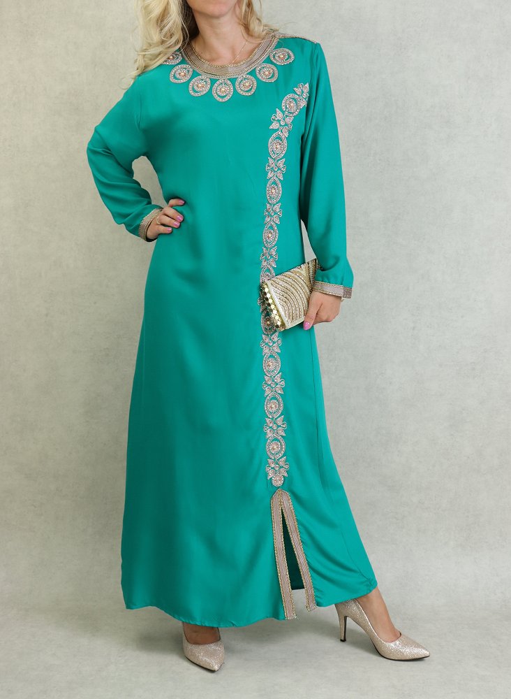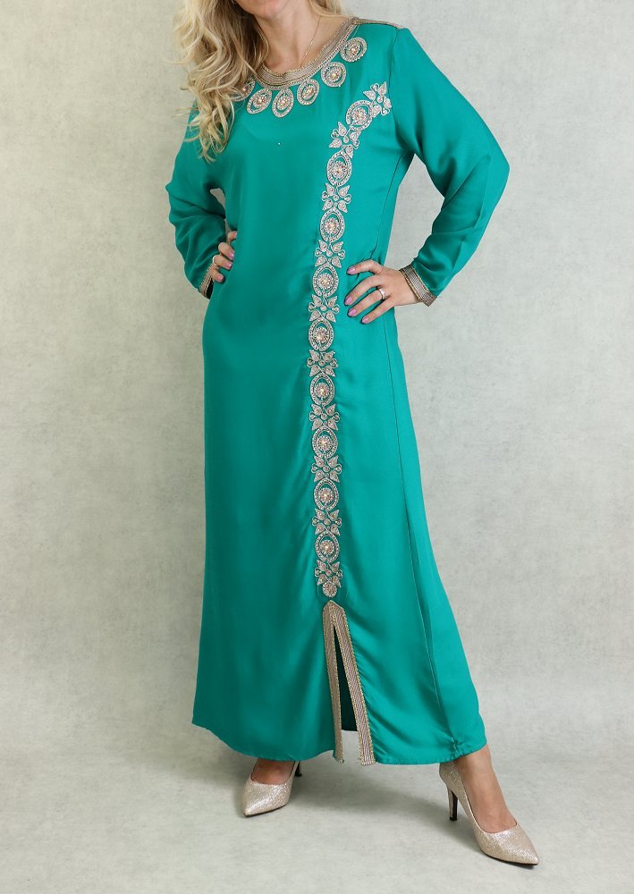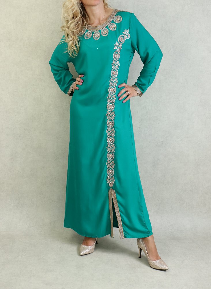 Robe orientale pour femme avec broderie dorée et strass multicouleur - Couleur Vert émeraude - REF. 33674 (25.00 €)