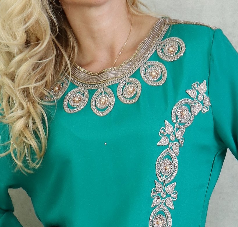 Robe orientale algérienne brodée et perlée pour femme - Couleur Vert émeraude Vetement & Accessoire