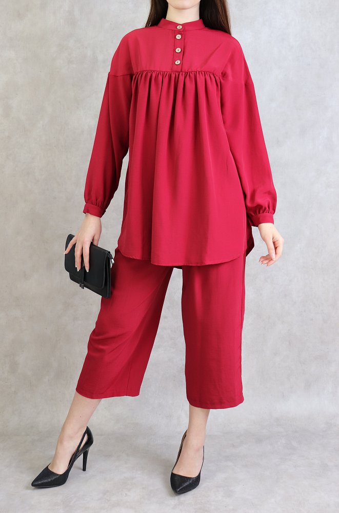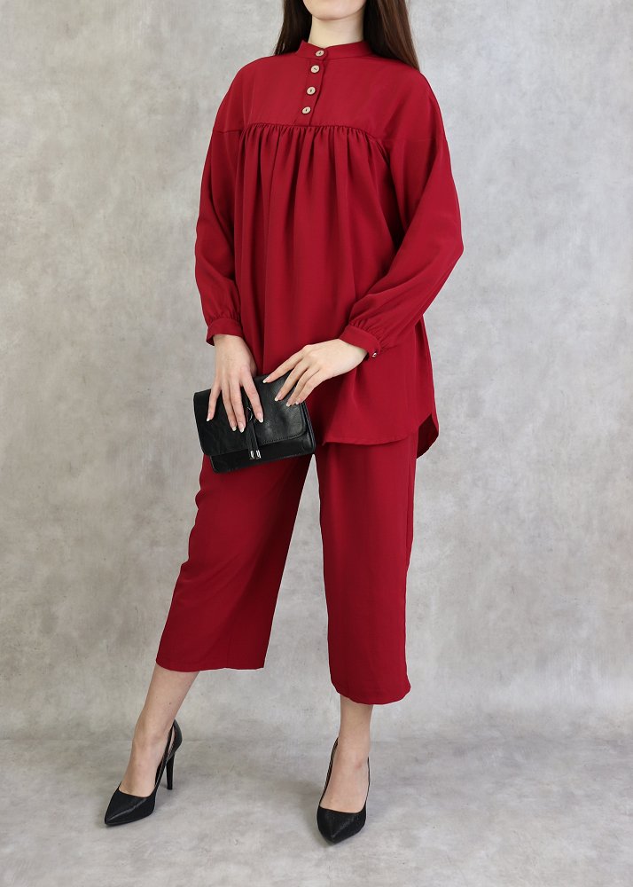 Ensemble 2 pièces ultra chic, tunique ample, manches longue finitions boutonné, col officier, patte de boutonnage, Pantalon large avec plis coupe droite, on aime son tomber irrésistible, fermeture zippée sur le coté..