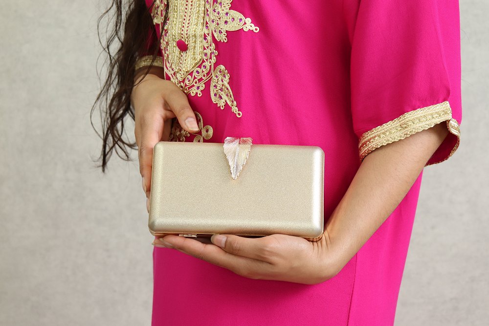 Sac rigide classe pour cérémonie, soirée, mariage, etc. dispose d'une bandoulière en chaînette est également très féminine.